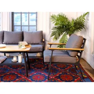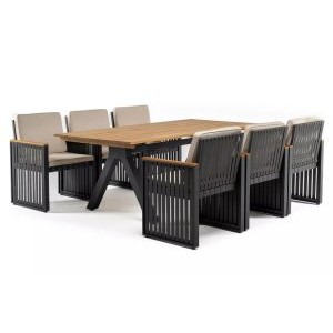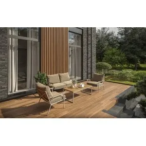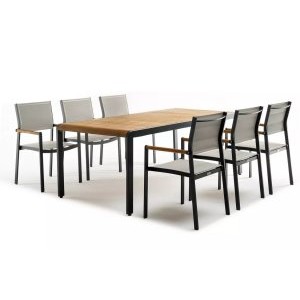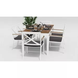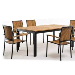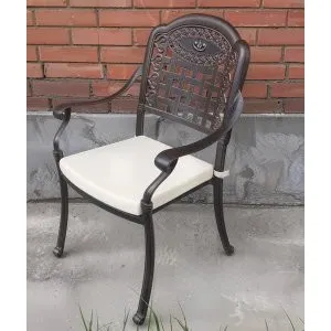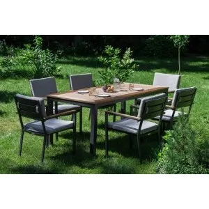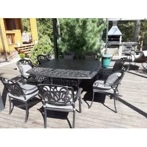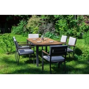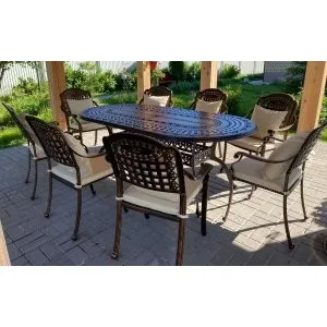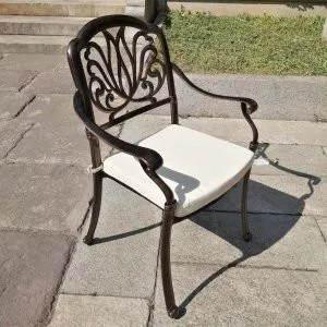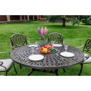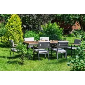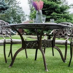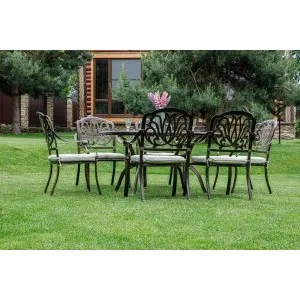Однообразные раскладные столы и стулья из металлических профилей ушли в прошлое, новейшая садовая мебель из металла очень разнообразна. Такая мебель может быть полностью сделана из алюминия или стали, а может иметь только металлический каркас и дополнительные элементы из стекла или ротанга. Также часто для украшения металлической мебели используются деревянные и пластиковые детали. Из этих материалов делают подлокотники и столешницы, пластиковые накладки надевают на ножки столов и стульев, чтобы они не царапали пол. Мебель из металла с декоративными элементами выглядит очень уютно и помогает создать на садовом участке расслабляющую атмосферу, настраивающую на беззаботный отдых.