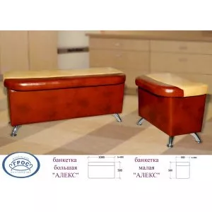В каталоге представлен большой выбор банкеток со спинкой, ящиками, полками для обуви и подлокотниками.