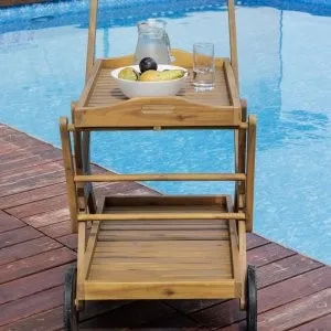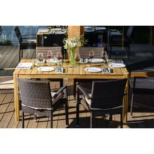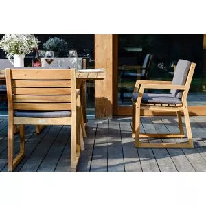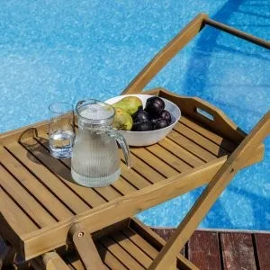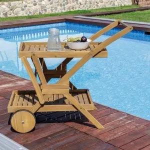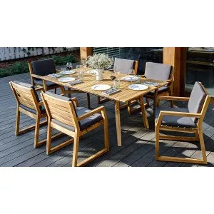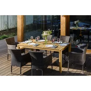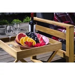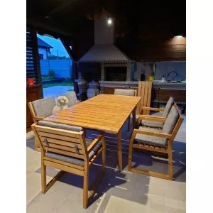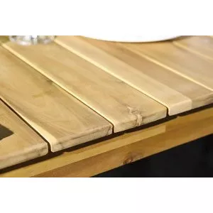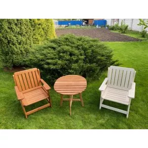 Деревянная мебель для дачного участка чаще всего изготавливается из сосны, акации, ели или тика. Самыми недорогими являются изделия из сосны, их срок службы составляет несколько сезонов, затем деревянные элементы начинают постепенно рассыхаться и деформироваться. Намного прочнее элементы оформления интерьера и экстерьера, сделанные из акации, так как данный материал хорошо переносит воздействие внешней среды. А самой прочной считается мебель из тика. Тик – невероятно долговечная древесина, которая практически не реагирует на осадки и изменения температуры, более того, при долгом контакте с водой предметы, изготовленные из тика, становятся более прочными на изгиб.