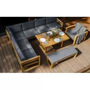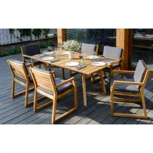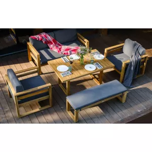 Уличная мебель из натуральной дерева – прекрасный вариант для дачного участка или террасы. Предметы из дерева экологически безопасны, всегда выглядят презентабельно, создают уютную обстановку и гармонично смотрятся на фоне любого ландшафта. Дачная мебель такого типа изготавливают из прочных пород дерева, которые хорошо переносят колебания температуры и высокую влажность, поэтому готовые изделия служат очень долго.