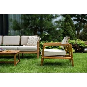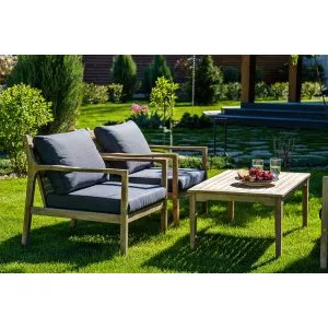 Деревянная мебель для дачного участка чаще всего изготавливается из сосны, акации, ели или тика. Самыми недорогими являются изделия из сосны, их срок службы составляет несколько сезонов, затем деревянные элементы начинают постепенно рассыхаться и деформироваться. Намного прочнее элементы оформления интерьера и экстерьера, сделанные из акации, так как данный материал хорошо переносит воздействие внешней среды. А самой прочной считается мебель из тика. Тик – невероятно долговечная древесина, которая практически не реагирует на осадки и изменения температуры, более того, при долгом контакте с водой предметы, изготовленные из тика, становятся более прочными на изгиб.