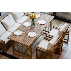Уличная мебель из натуральной дерева – прекрасный вариант для дачного участка или террасы. Предметы из дерева экологически безопасны, всегда выглядят презентабельно, создают уютную обстановку и гармонично смотрятся на фоне любого ландшафта. Дачная мебель такого типа изготавливают из прочных пород дерева, которые хорошо переносят колебания температуры и высокую влажность, поэтому готовые изделия служат очень долго.