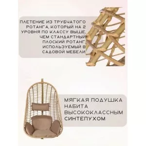 Если вы любите проводить время на свежем воздухе, присмотрите себе плетеное кресло из ротанга, позволяющее комфортно отдохнуть среди мягких подушек. Конструкция изделия включает в себя прочный стальной или алюминиевый каркас и подвесное кресло в форме кокона. Стильная мебель подойдёт не только для дачи, но и прекрасно впишется в интерьер загородного дома, добавив изюминку вашему окружению.