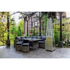 Газовые обогреватели – уличная разновидность ламп, обеспечивающих тепло и комфорт при прохладной погоде. Конструкция может быть выполнена в виде массивного уличного фонаря, оригинальной колонны в виде усеченной пирамиды или цилиндра.