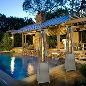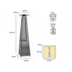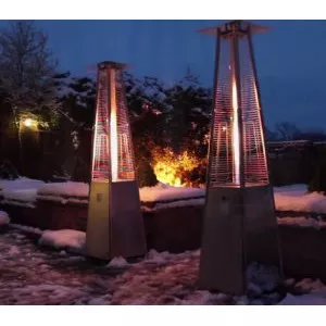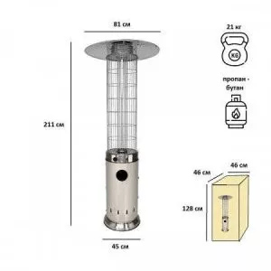 Газовые обогреватели – уличная разновидность ламп, обеспечивающих тепло и комфорт при прохладной погоде. Конструкция может быть выполнена в виде массивного уличного фонаря, оригинальной колонны в виде усеченной пирамиды или цилиндра.