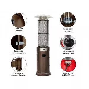 Уличные газовые обогреватели – разновидность ламп, работающих при помощи газа. Они предназначены для эксплуатации только на открытых пространствах, могут обогревать от 20-23 квадратных метров в зависимости от модели и ее мощности. Такие лампы станут отличным решением для ресторанов и кафе, лаунж-зоны отеля, террасы или открытого бара. Обогреватель, в зависимости от особенностей конструкции, способен беспрерывно работать в течение 15-31 часа.