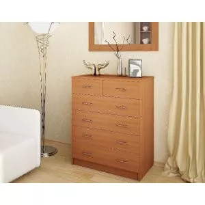 Обычные большие комоды для спальни без зеркал приобретают чаще всего. Они имеют классическую форму, а вместительные ящики разной глубины позволяют разложить множество личных вещей и постельного белья.