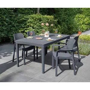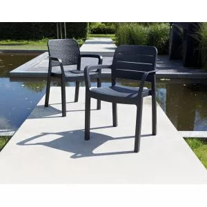 Пластмассовая мебель, как правило, имеет простую форму, несложную конструкцию, но при этом может выглядеть по-разному. Столы, стулья и табуретки из пластика могут быть раскладными и монолитными, могут иметь декоративные детали или не иметь их вообще, могут быть окрашены в любые цвета, дизайн такой мебели может быть выполнен как в классическом, так и в футуристическом стиле. Поэтому каждый потребитель имеет возможность выбрать товары из этой категории, наиболее подходящие к остальному оформлению его дачного участка.