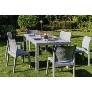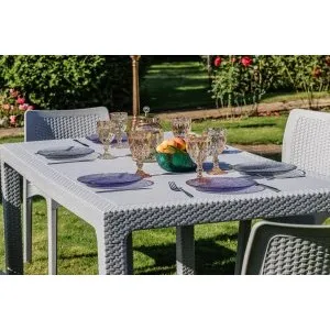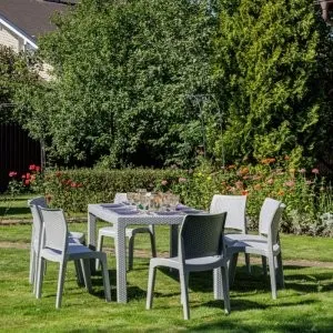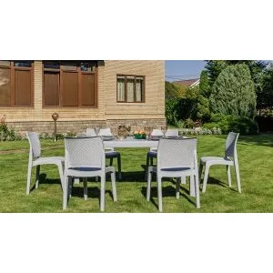 Пластмассовая мебель, как правило, имеет простую форму, несложную конструкцию, но при этом может выглядеть по-разному. Столы, стулья и табуретки из пластика могут быть раскладными и монолитными, могут иметь декоративные детали или не иметь их вообще, могут быть окрашены в любые цвета, дизайн такой мебели может быть выполнен как в классическом, так и в футуристическом стиле. Поэтому каждый потребитель имеет возможность выбрать товары из этой категории, наиболее подходящие к остальному оформлению его дачного участка.