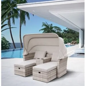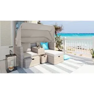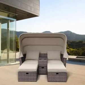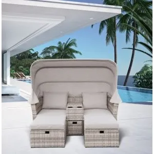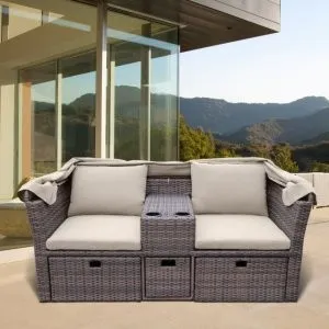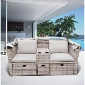 Диван-трансформер из искусственного ротанга со столом AFM-350B Beige