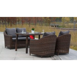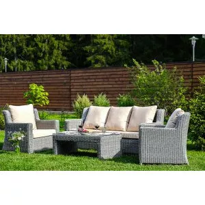 Наборы садовой мебели: плетеные кресла, диванчики и столики – это оптимальный вариант для размещения на террасе, в беседке загородного дома или просто на открытой площадке у водоема. Основное преимущество такой мебели из искусственного ротанга состоит в том, что ее не нужно заносить в дом на случай непогоды и даже зимой. Это возможно благодаря антикоррозийной защите каркаса и особенным водоотталкивающим свойствам синтетических нитей, которые подвергаются специальной обработке.