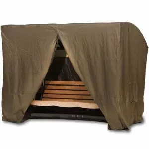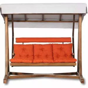 Садовые качели деревянные с москитной сеткой трехместные